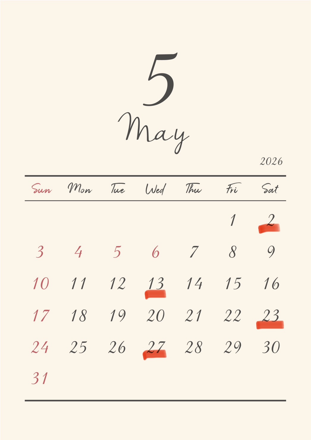 13日(水)、23日(土)、27日(水)