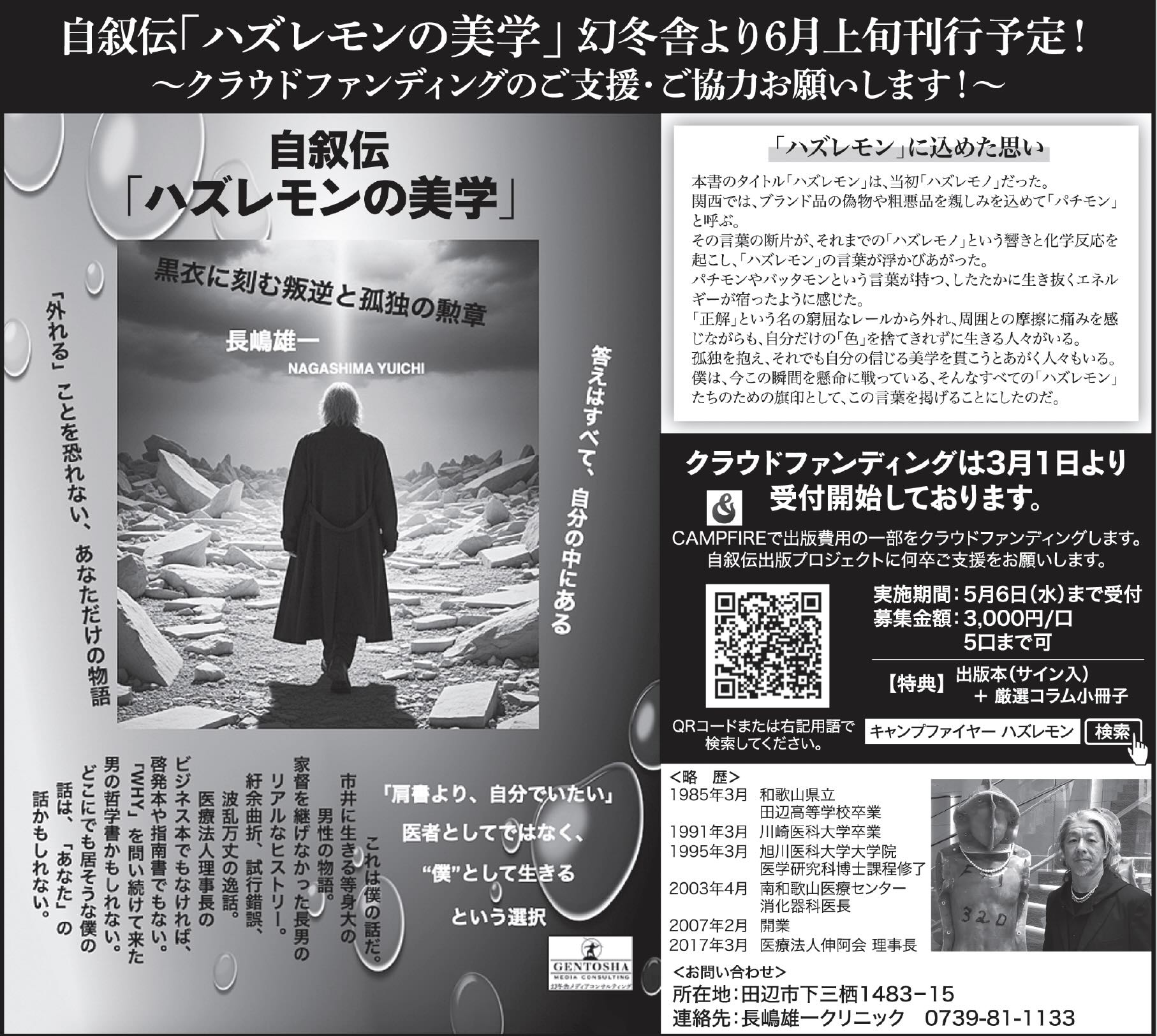 白衣を脱ぎ捨て、ヨウジヤマモトの黒を纏って戦う僕の姿が、そんな誰かの「正解のない人生」を肯定する小さな光になれば。そう願って、この広告という名の狼煙を上げました。