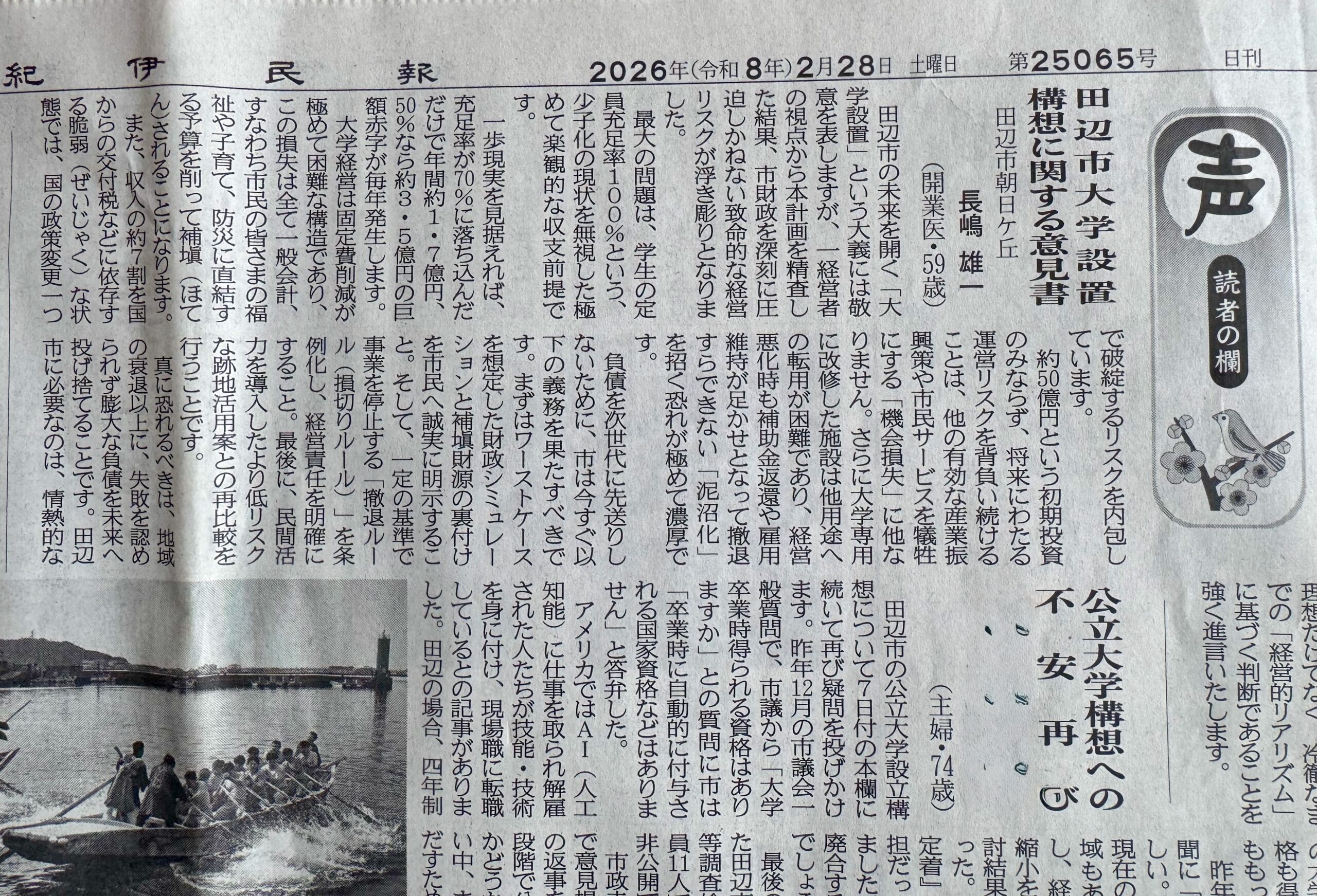 2026年2月28日。僕は地元紙「紀伊民報」の『読者の声』に、一通の寄稿を投じた。