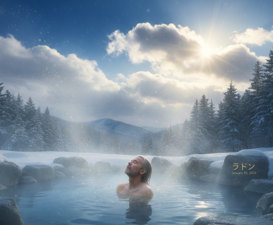 二度も起きれば、もう目は冴えてしまった。静まり返った部屋を抜け出し、昨夜のリベンジを果たすべく大浴場へ向かう。昨晩は女性用だった露天風呂に浸かり、雲間から覗く冬の青空を見上げながら、ラドンという放射性希ガスを全身に浴びる。 「高級日雇い運転手」としての二日目の始業は、この湯船からだ。こうして細胞と脳のネットワークを活性化させなければ、やっていられない。