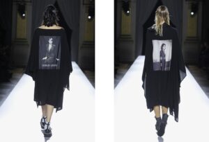 12時半スタートのセッションで、僕は先ず2体のルックを確認した。3階から階段を上った会場のすぐ左手に、僕が疑問視していた2体のドレスが静かにハンガーに掛けられ展示されていた。「まさか!」半信半疑で価格表示を確認したら、確かに値付けされている。しかも、想像していたよりも値頃だ。最初で最後の巨匠達のコラボが実現し、僕の手が届く「商品」として目の前にあることに、僕は感無量だった。